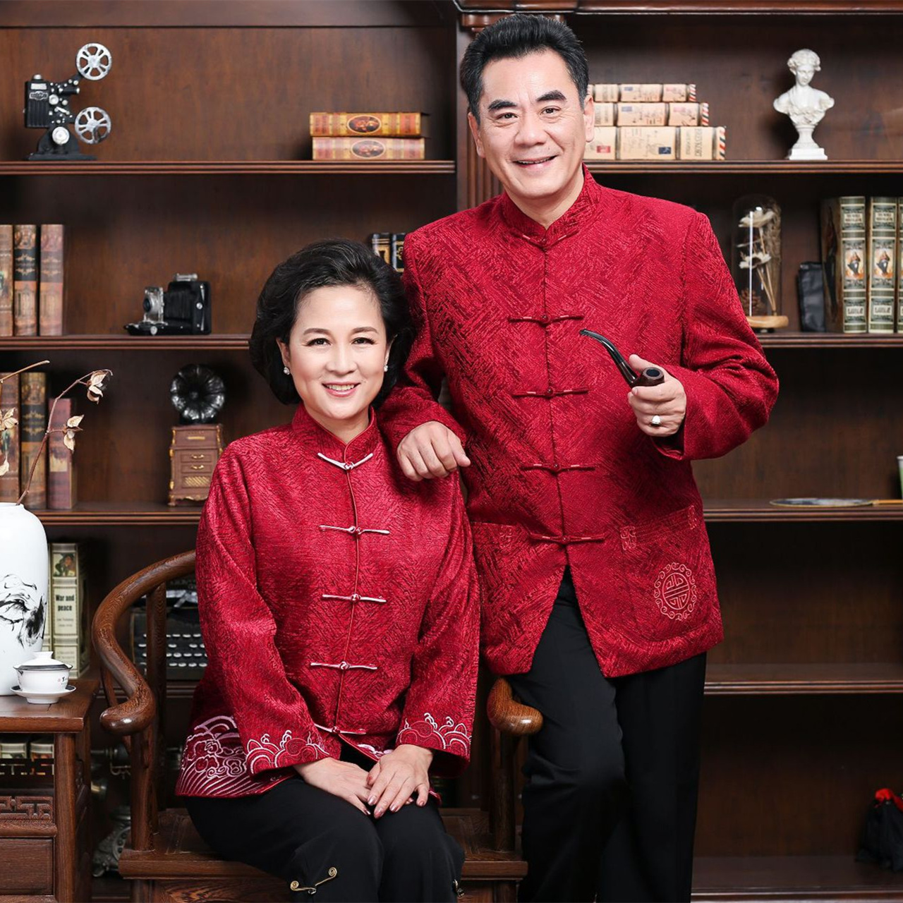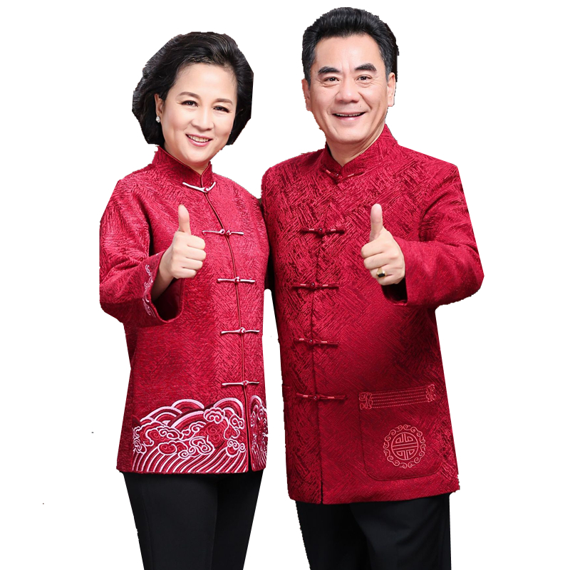Elderly over-life lovers Tang dress Long sleeves Large red autumn Winter Thickened Warm Birthday Middle Aged Comeback wind blouses