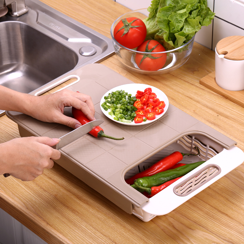Kitchen Chopping Board Sink Telescopic Rack Leachable Cut Vegetable Fruit Cutting Board Plastic Home Case Board Shelve