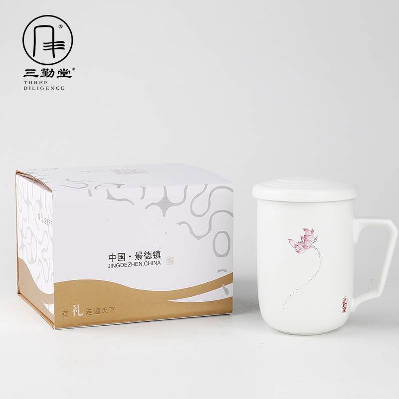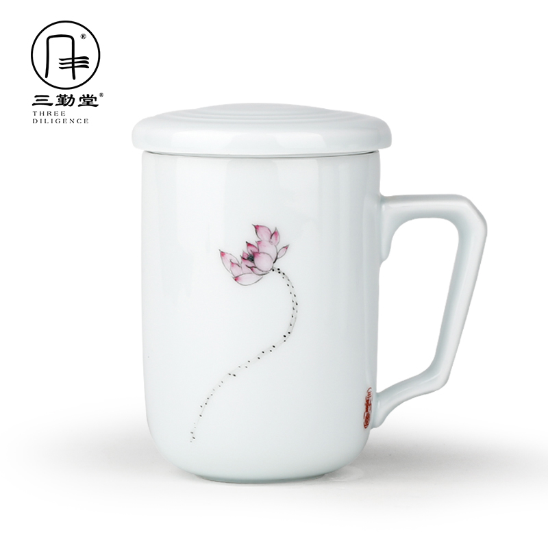 San Dinghau Ceramic Tea Cup Pure Hand Draw Filter Belt Cover Tea Separation Office Cup Chinese Tea Cup Members