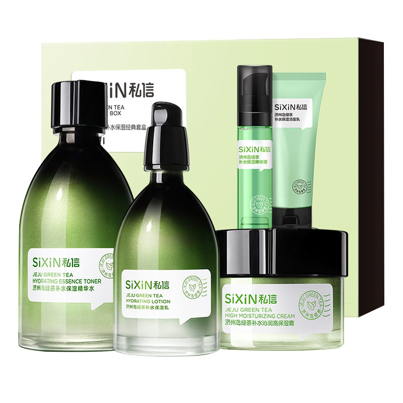 Private letter Jeju Island green tea water milk set moisturizing moisturizing cosmetic skin care product set box female