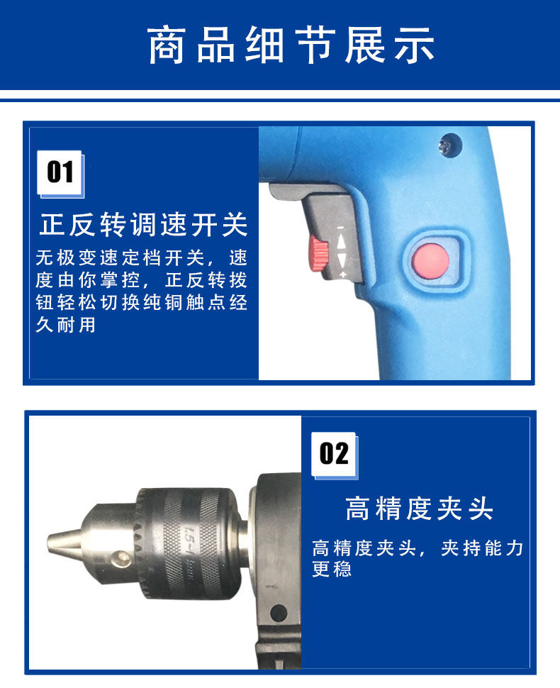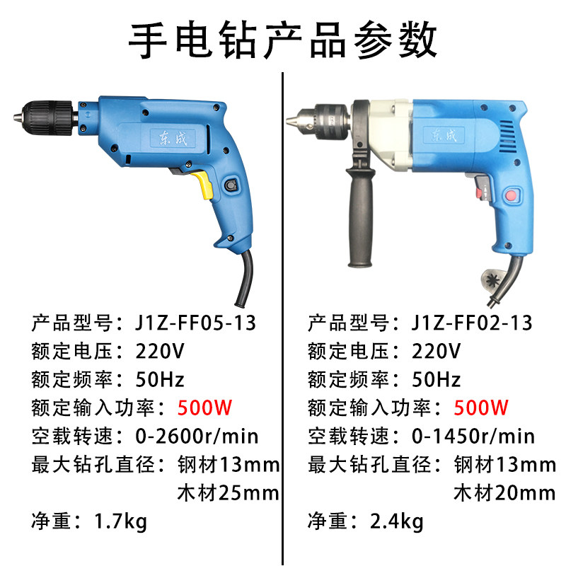 Dongcheng electric drill J1Z-FF02-13 forward and reverse adjustable speed high-power drilling electric drill electric tool