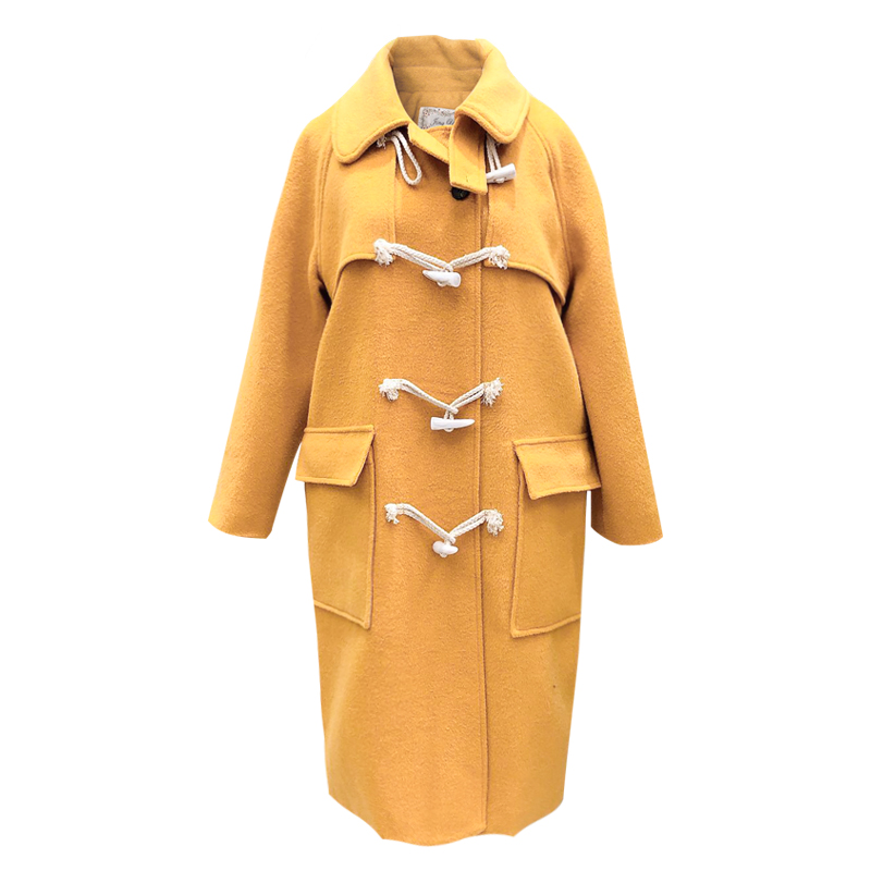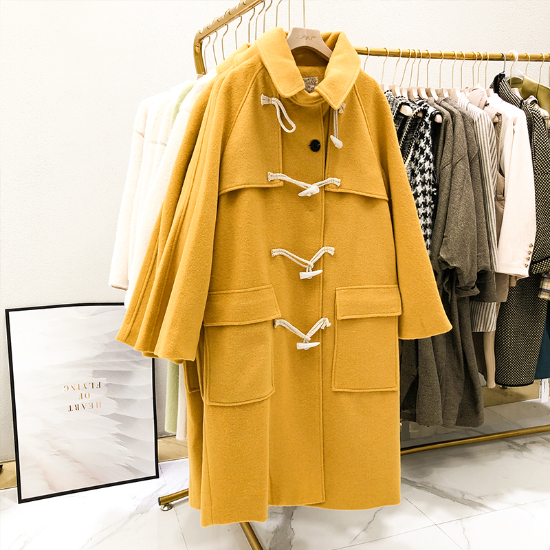 2021 winter Korean Lee Sung-kyung same style horn button coat Hepburn style loose mid-length woolen coat women