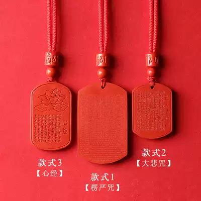 Send identification certificate Chen Shi Cinnabar Shurangama Mantra pendant Men and women Heart Sutra Great Compassion Mantra full text of the Year of life red necklace pendant