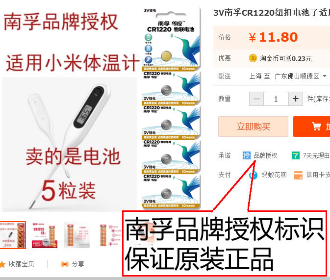 3V Nanfu CR1220 button Lithium Battery Millet Home Medical Electronic Thermometer Thermometer Model MMC-W201