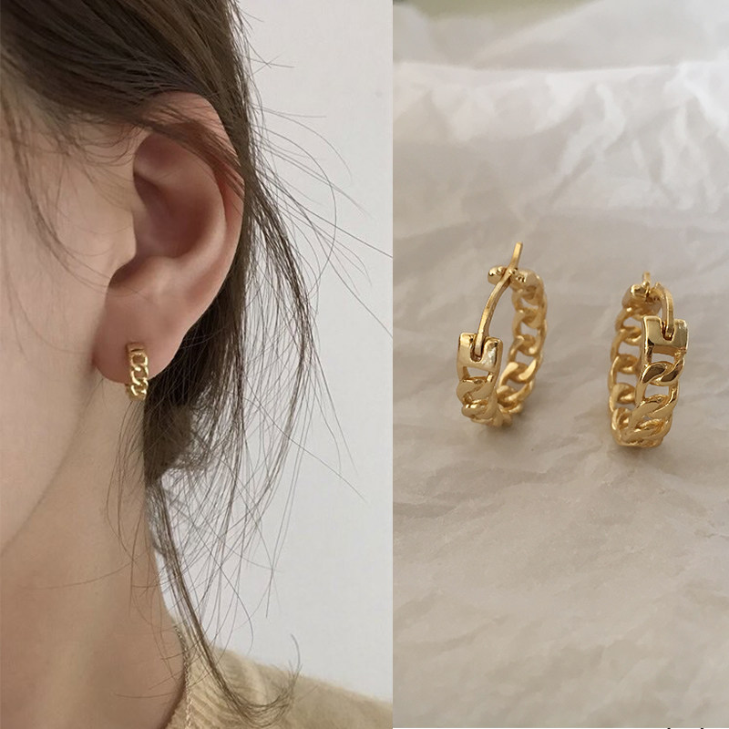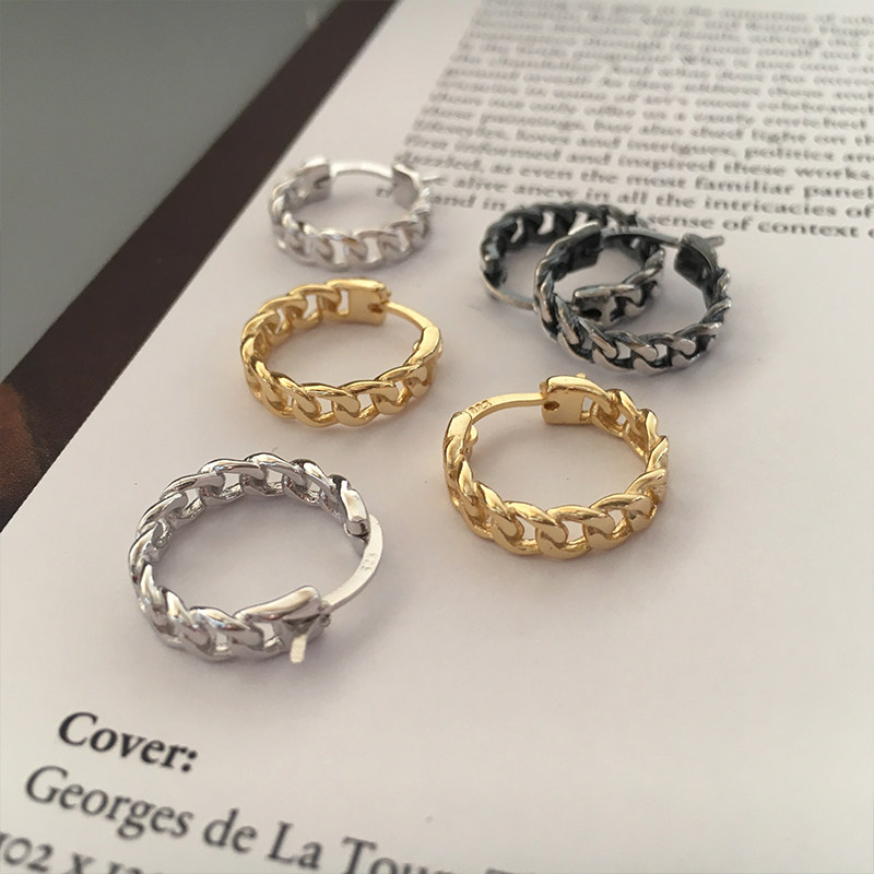 S925 sterling silver South Korea, Europe, America, Hong Kong, fashion people, gold chain, twist, small earrings, earrings, earrings, hypoallergenic men and women