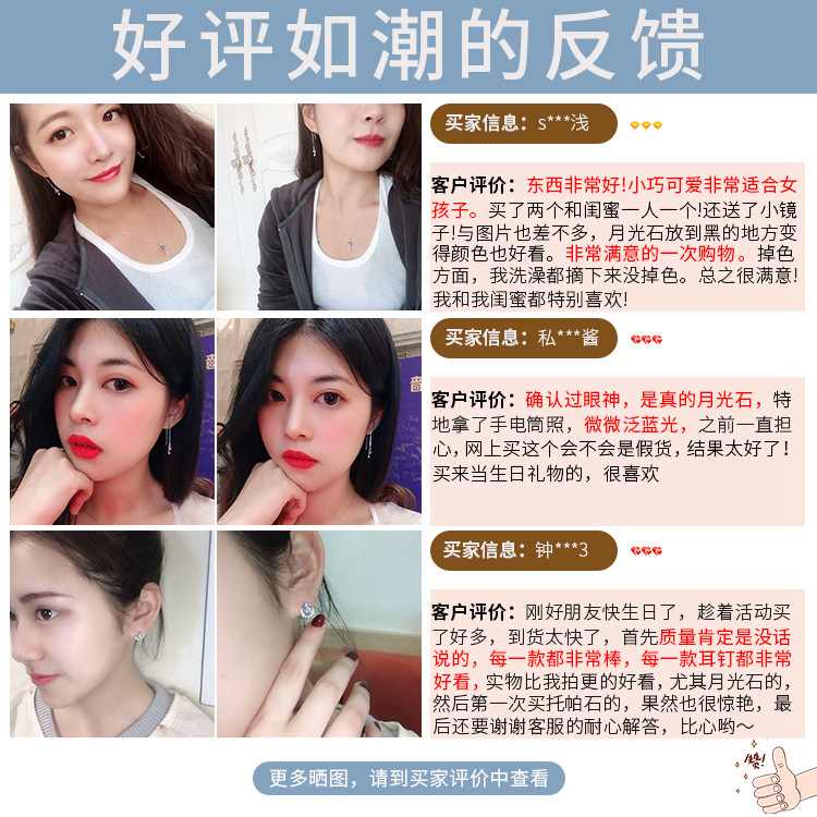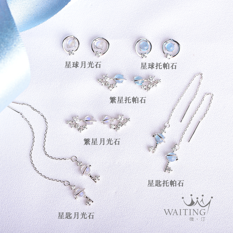 Moonlight Stone Earshot Pure Silver Lukewarm Wind Net Red Brief About Woman Small Earrings 2020 New Tide Ear Necklace Birthday Present