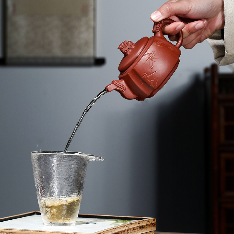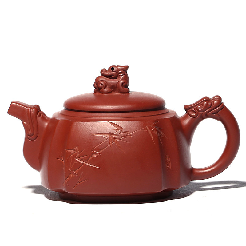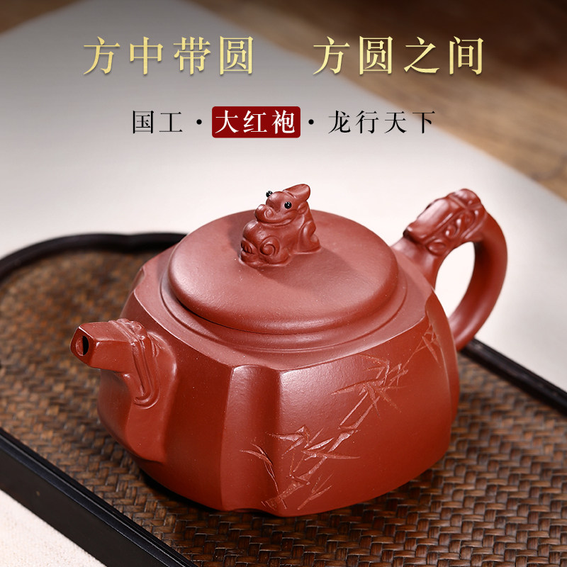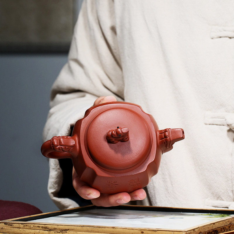 Lixing Purple Sand Pot Country Workers Home Big Red Gown Pure Handmade Bubble Teapot of Tetragonal Machine Pumping Corner of the Dragon Line