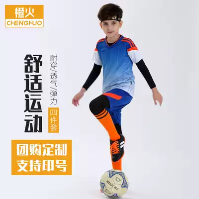 Orange fire four-piece children's football suit suit training suit Long-sleeved autumn and winter boys 'sports boys' sports jersey