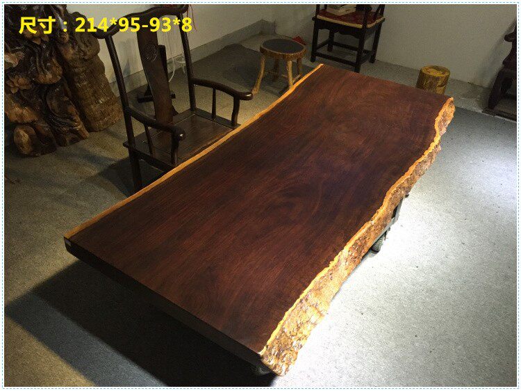Size: 214-94-8 ebony solid wood large board solid wood tea table painting case dining table leather ash wood windmill wood