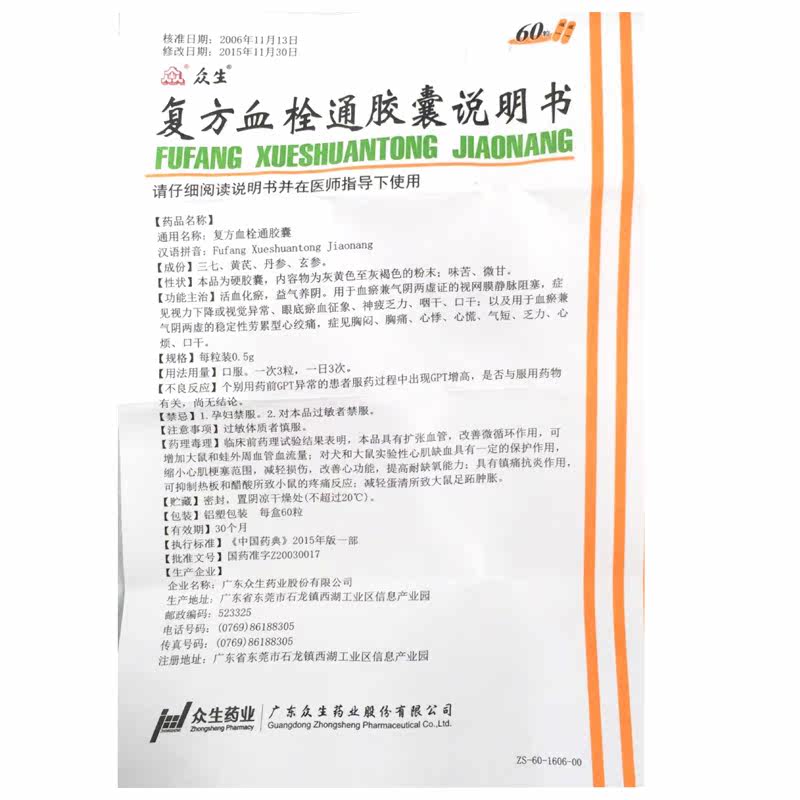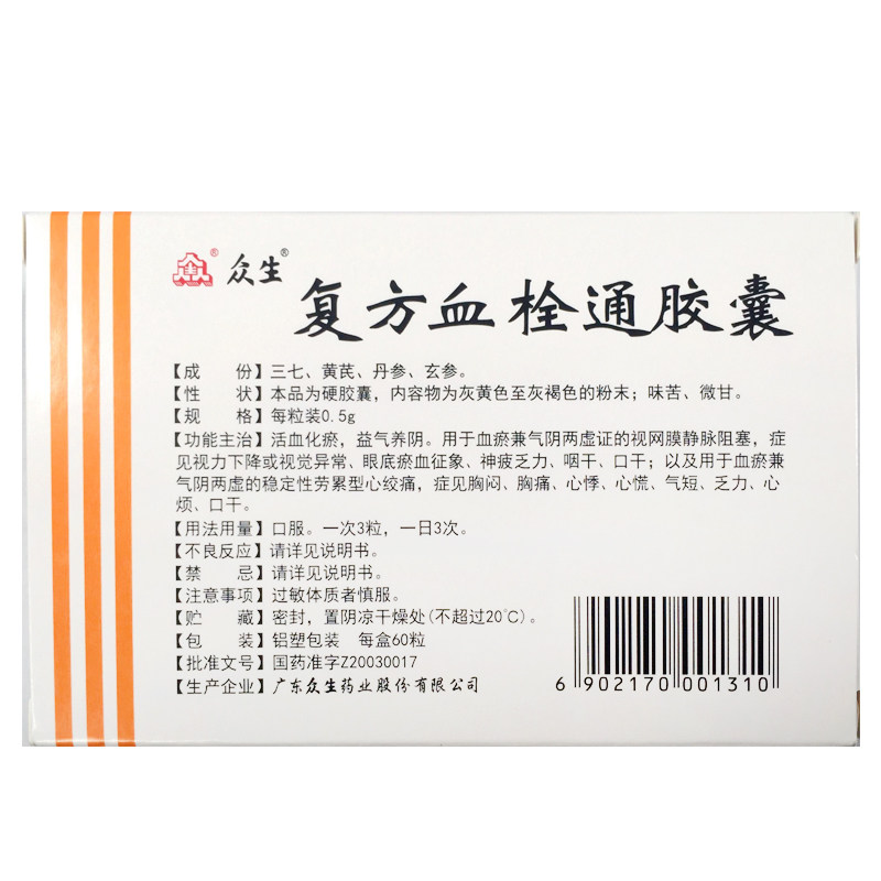 Living Beings Compound Thrombus Capsule 0 5G* 60 Grain Case Angina Pectoris Chest Tightness Palpitation Vein Obstruction Pharyngeal Dry Mouth Dry