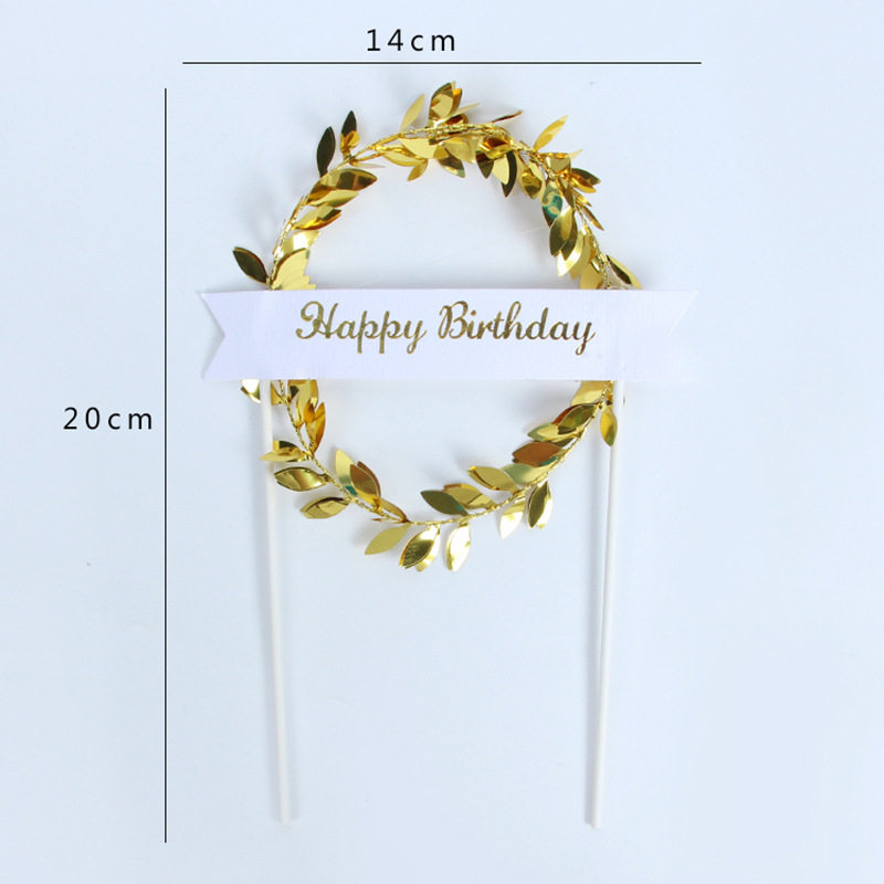 Creative Cake Decoration Birthday Cake Plugin Metal Series Gold And Silver Leaf Flower Rings HB Insert Flag Dessert Table Arrangement