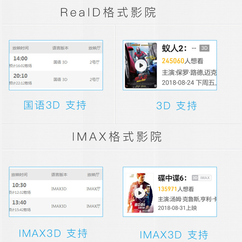 Reald format (common format Mandarin 3D English 3D type) Imax format (special for Imax 3D sessions) Myopia Reald clip (common format