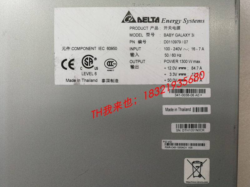 CISCO CISCO 341-0038 PWR-C45-1300ACV 1300W Power supply physical diagram