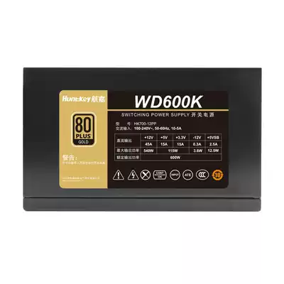 Hangjia WD600K power supply 600W Desktop computer power supply Rated 600W light sound back line game power supply Gold medal
