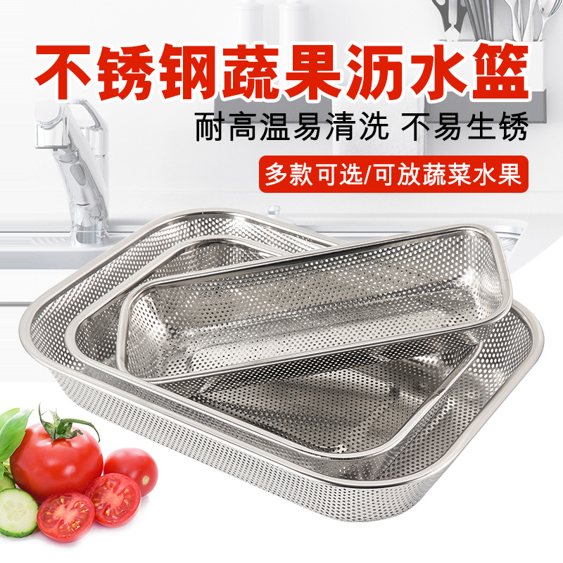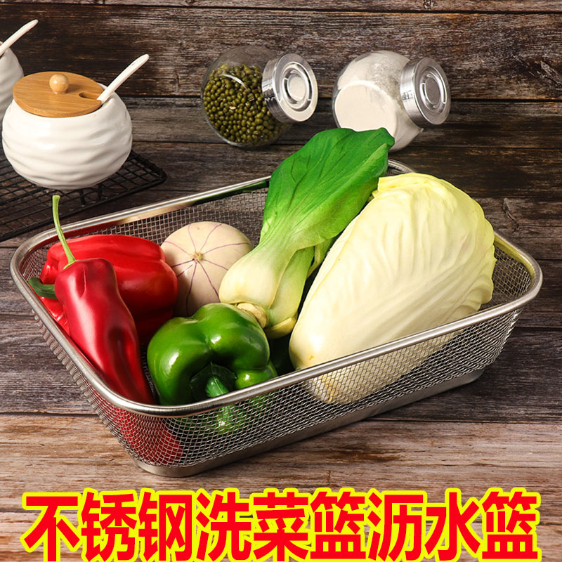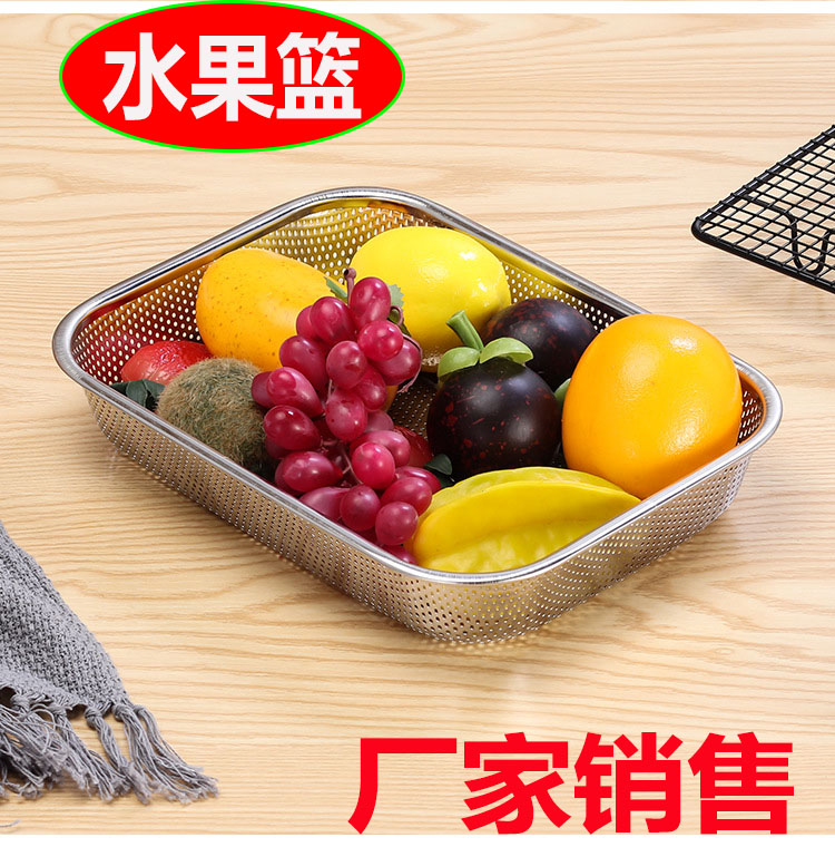 Stainless steel wash basket asphalt basket Kitchen basket home fruit dish multi - functional round wash basket fruit dish