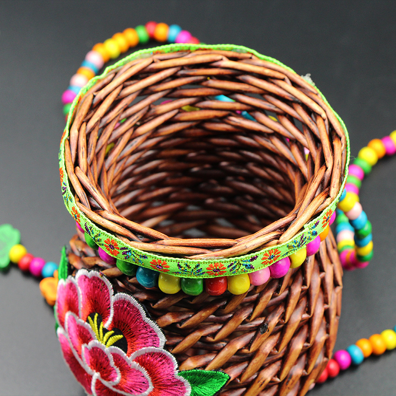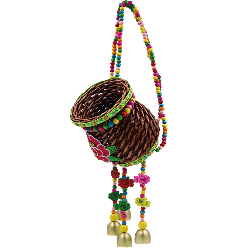 Ethnic style embroidery handmade rattan fish basket Children's shoulder small bamboo basket ornament Dance props embroidery small gift