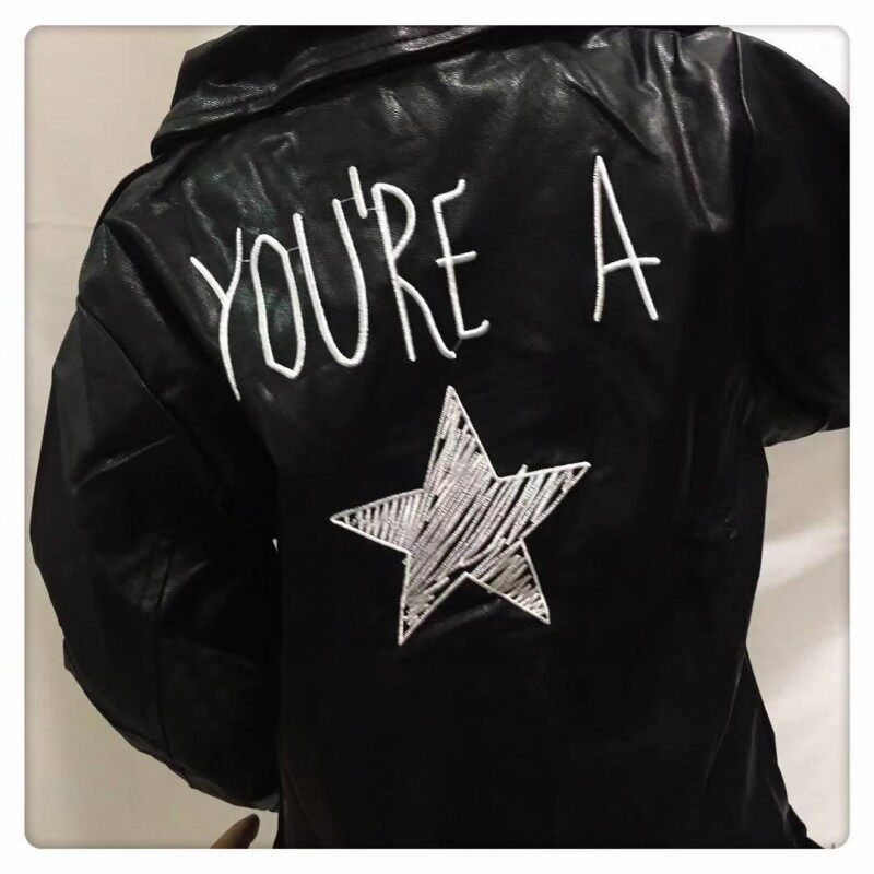 (Jo Jiao) New autumn and winter Boy and girl letter embroidery slanted zipper PU leather jacket