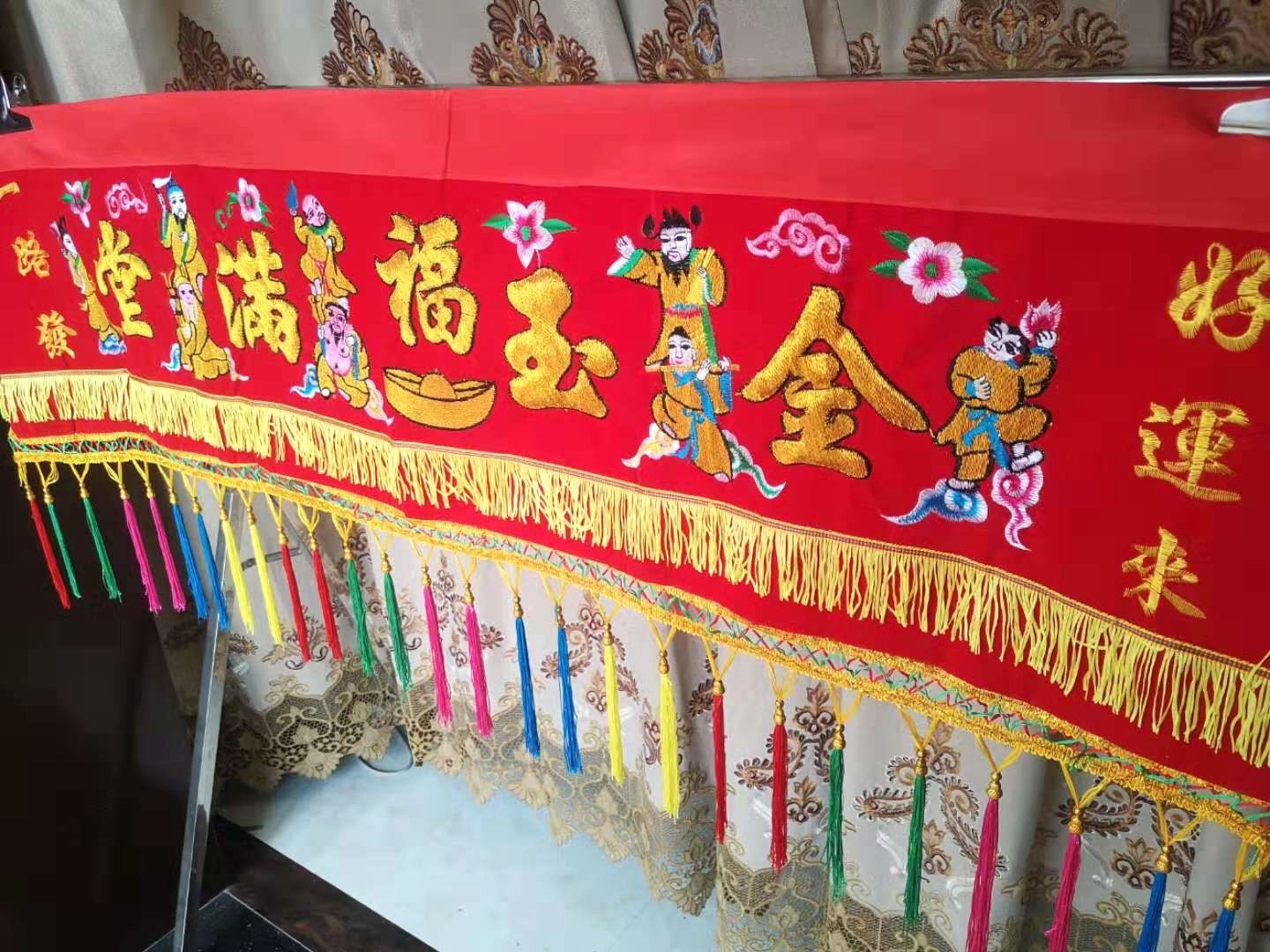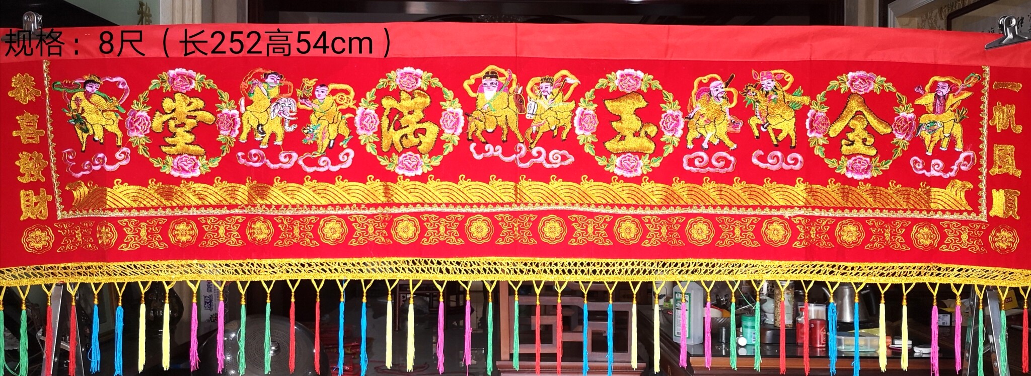 New products red cloth hanging sequins Longfeng Eight Immortals Colorful Banners Golden Jade Full of New Year Home Embroidery Religious Supplies