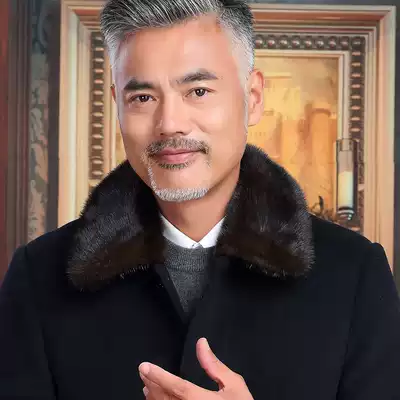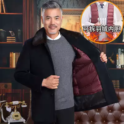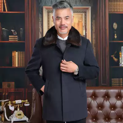 Autumn and winter elderly wool coat men thick medium and long version of lapel collar business trench coat large size father clothing woolen coat