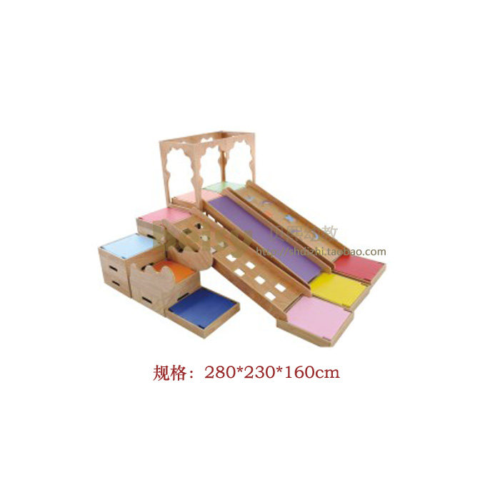 Wave straight slide Big A climbing frame Animal cage platform Short straight slide multi-purpose balancer Sponge pad Flower-shaped armrest box activity box Activity box platform (including cushions)Geometric corridor hollow climbing ladder balance beam Angel support