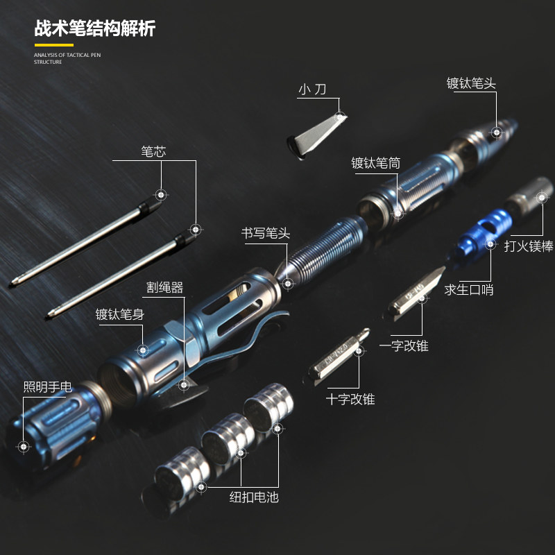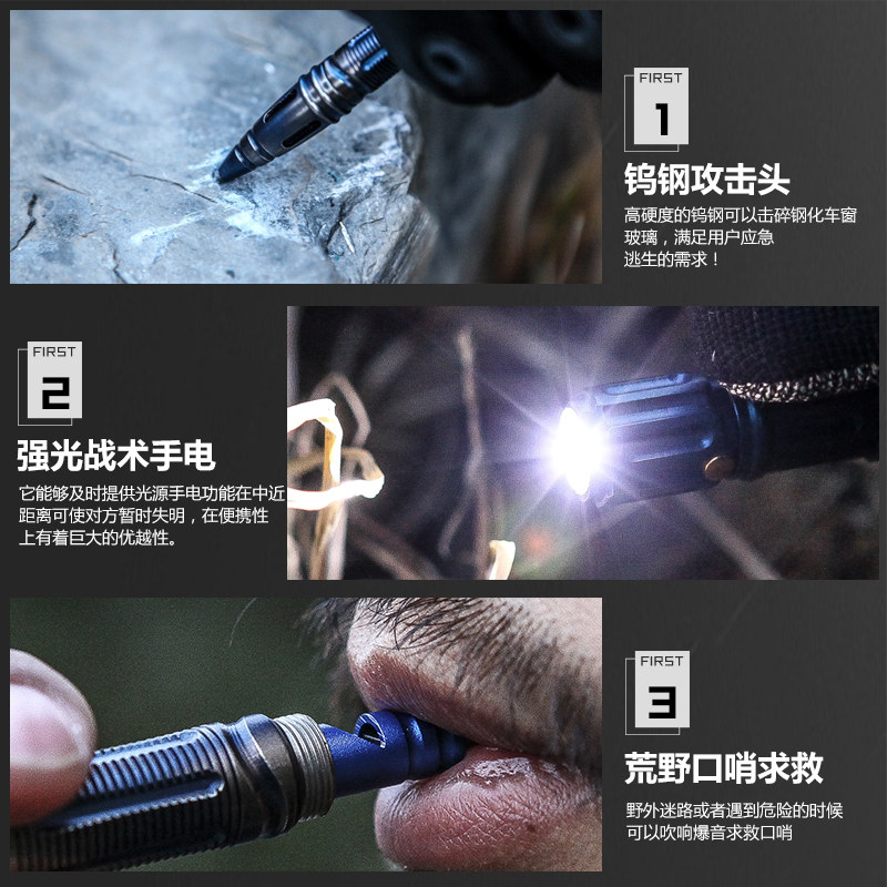 Outdoor multi-function tungsten steel tactical pen Self-defense supplies Women's self-defense pen wolf artifact Portable portable alarm