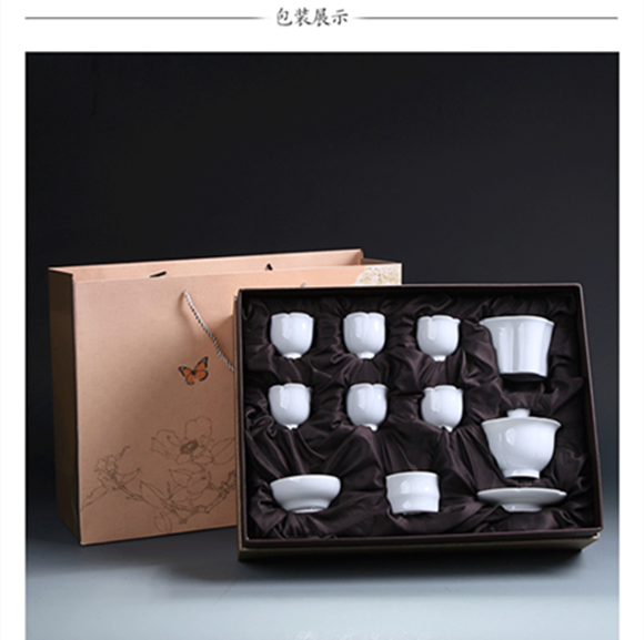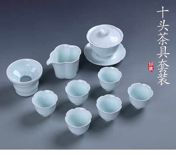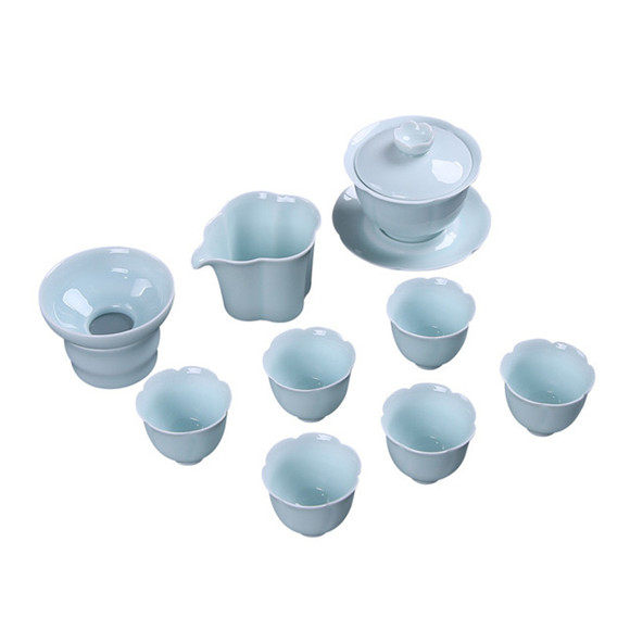 Song People's Wind Simple green and white porcelain Imitation Song Hutian Kiln 11 heads Gongfu tea set Tea ceremony set with gift box