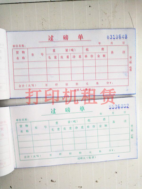 Two-fold weighing sheet 54 open three-fold carbonless copy weighing receipt Weighing sheet Loadometer single pound code single weighing document