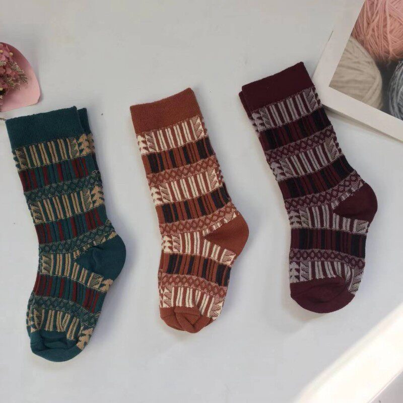 Spring and autumn New products for men and women Two-way double-needle vertical bar case Ho spelled pure cotton Children mid-cylinder retro bubble socks