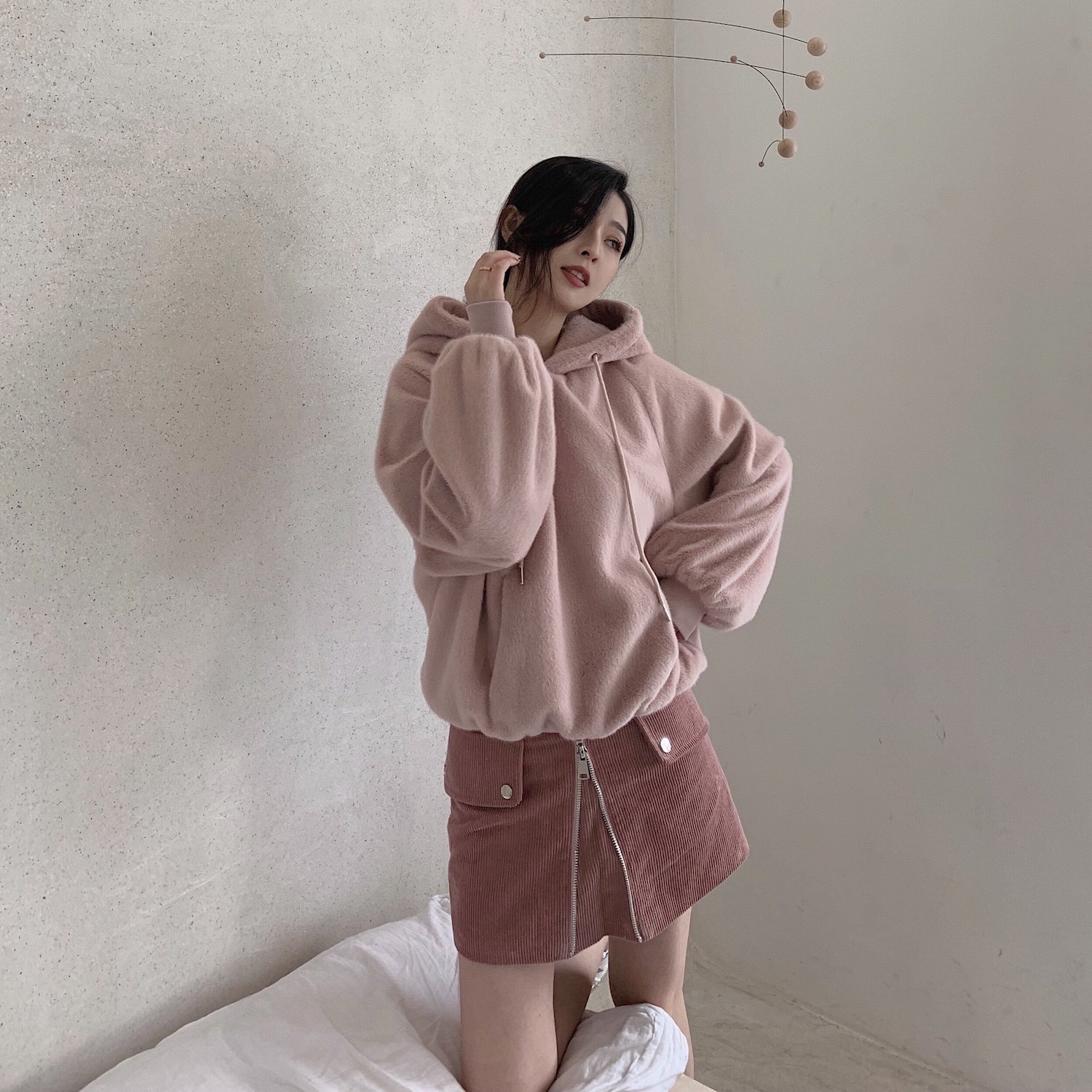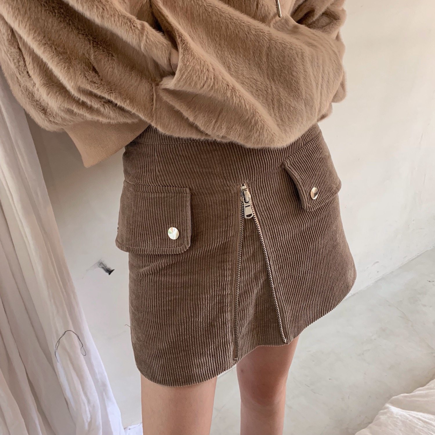 WALKINDARK] Front zip corduroy skirt