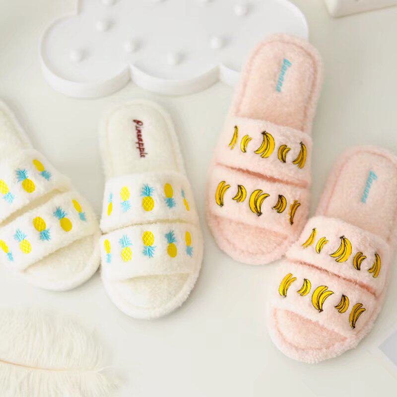 Day Department Brief Cute Embroidery Strawberry Pineapples Oil Fruits Plush Open-toe Slippers Female summer home Indoor Non-slip