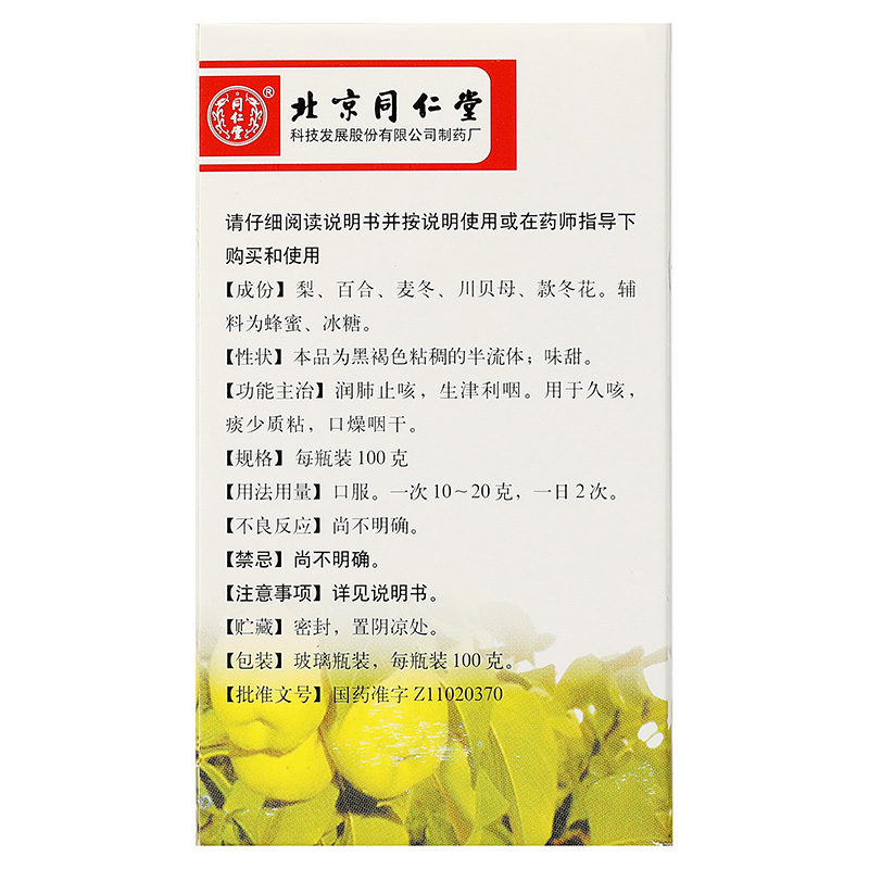 Tongren Qiu Pear lung paste and dry cough lung lung lung cough lung sydney paste cough 100g