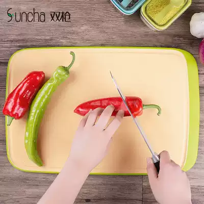 Double gun chopping board fashion mildew silver ion antibacterial wheat chopping board household fruit chopping board Environmental Protection children's non-staple food Board