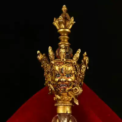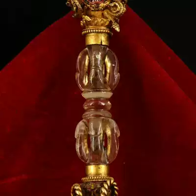 Tibetan monasteries collect old Tibetan silver handmade inlaid with natural crystal gilt painted steel magic pestle
