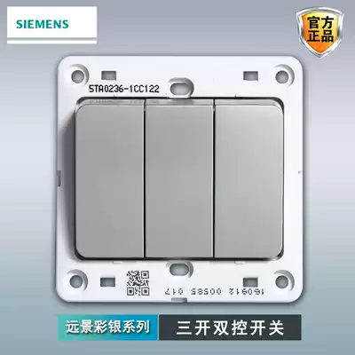 Siemens three-open double-cut light switch panel long-term color silver 86 household wall concealed triple double-cut switch
