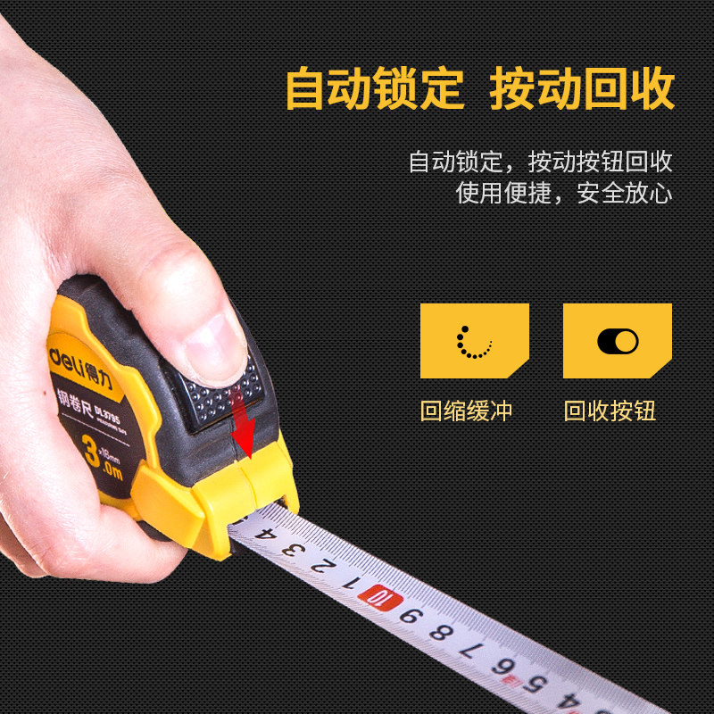 Deli tool steel tape measure 3 m 5 m 7 m 10 m multi-specification small portable drawing measurement calculation