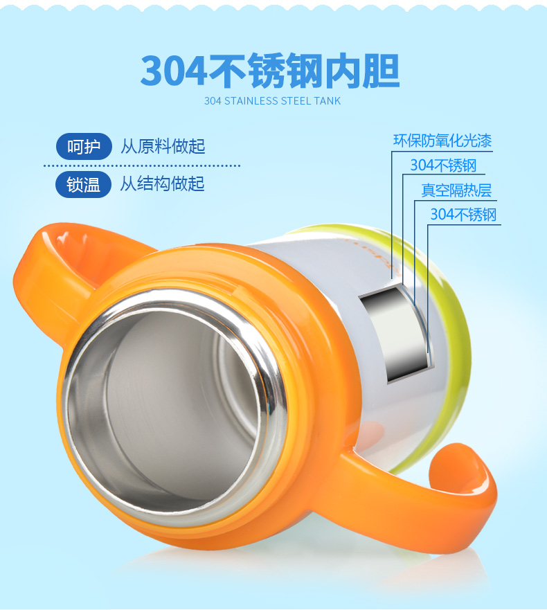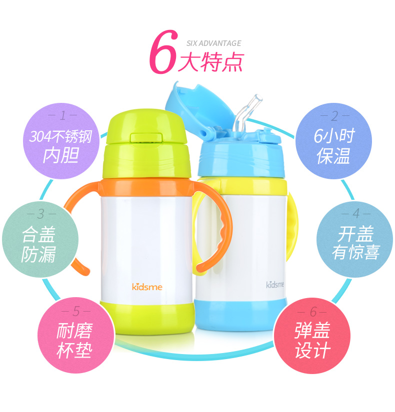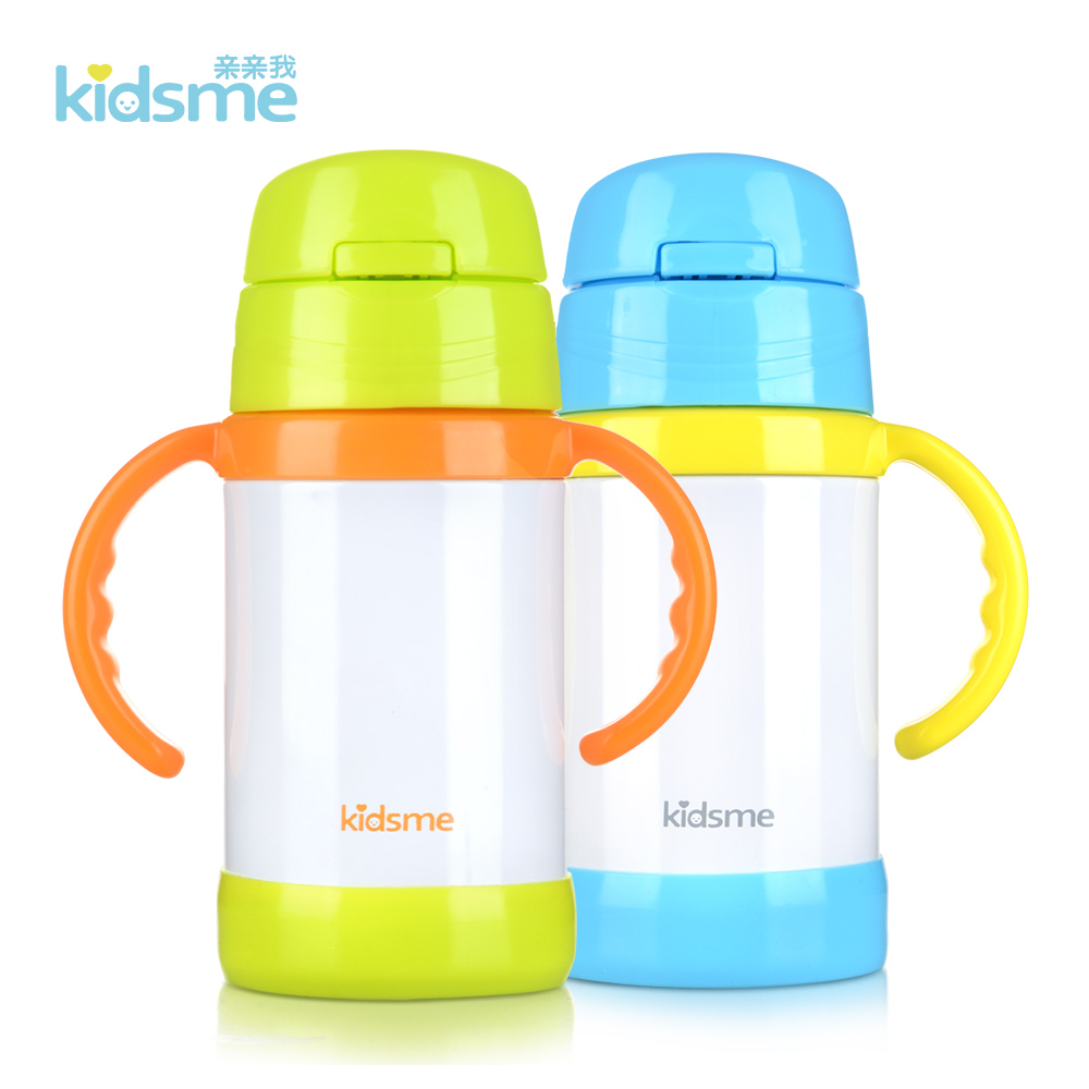 Kiss me baby children stainless steel insulation Cup with handle leak-proof drinking water baby straw children's drinking cup