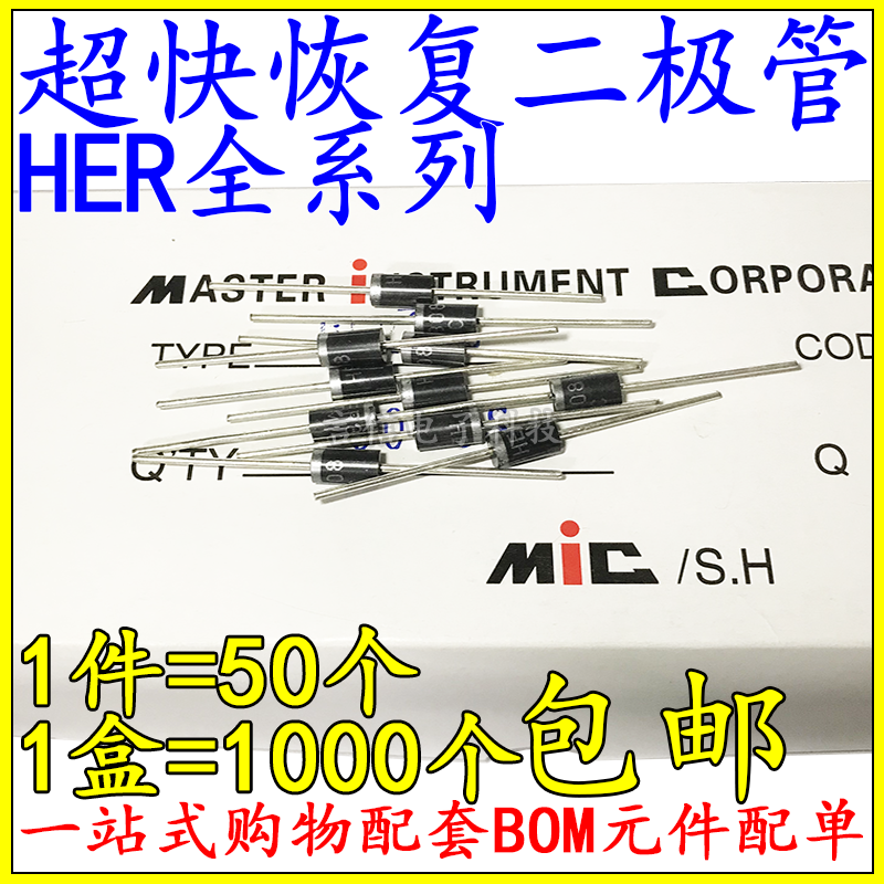 HER104(1A 400V)-50pcs HER108(1A 1000V)-50pcs HER203(2A 200V)-50pcs HE