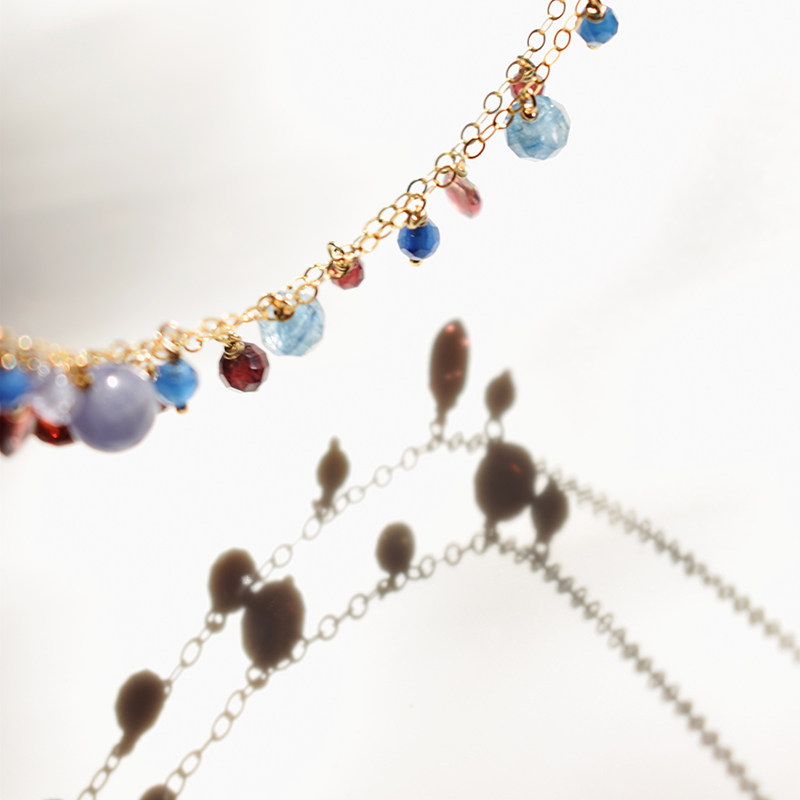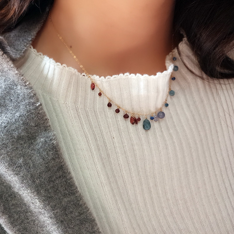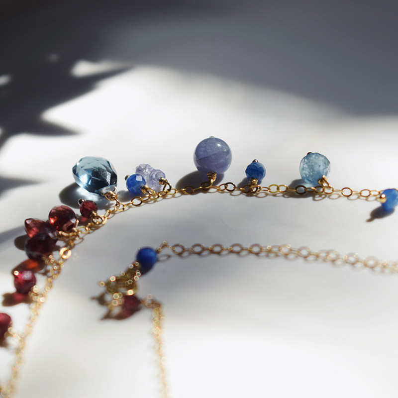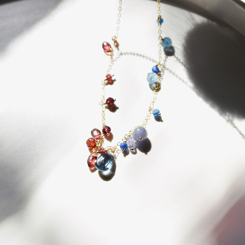 Red Blue-Three-in-one Grass Original Natural Pomegranate Stone Tansanite Blue Crystal 14k Bag Gold Elegant Lock Bone Chain Necklace