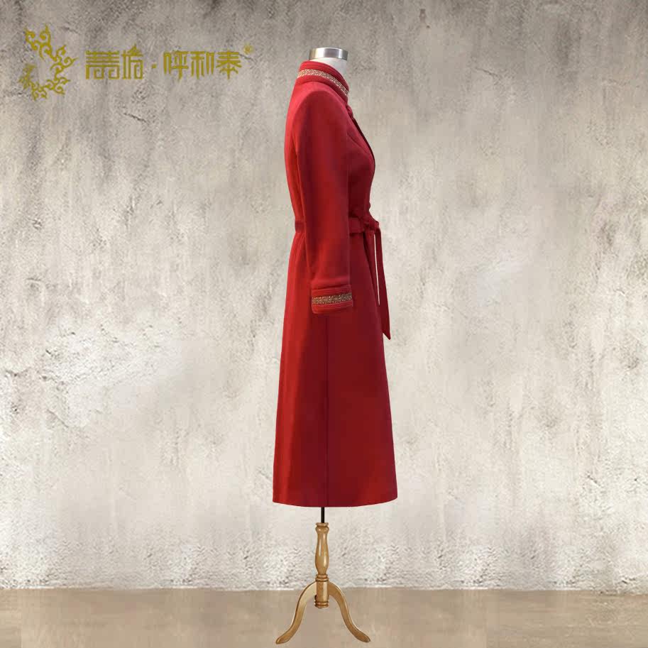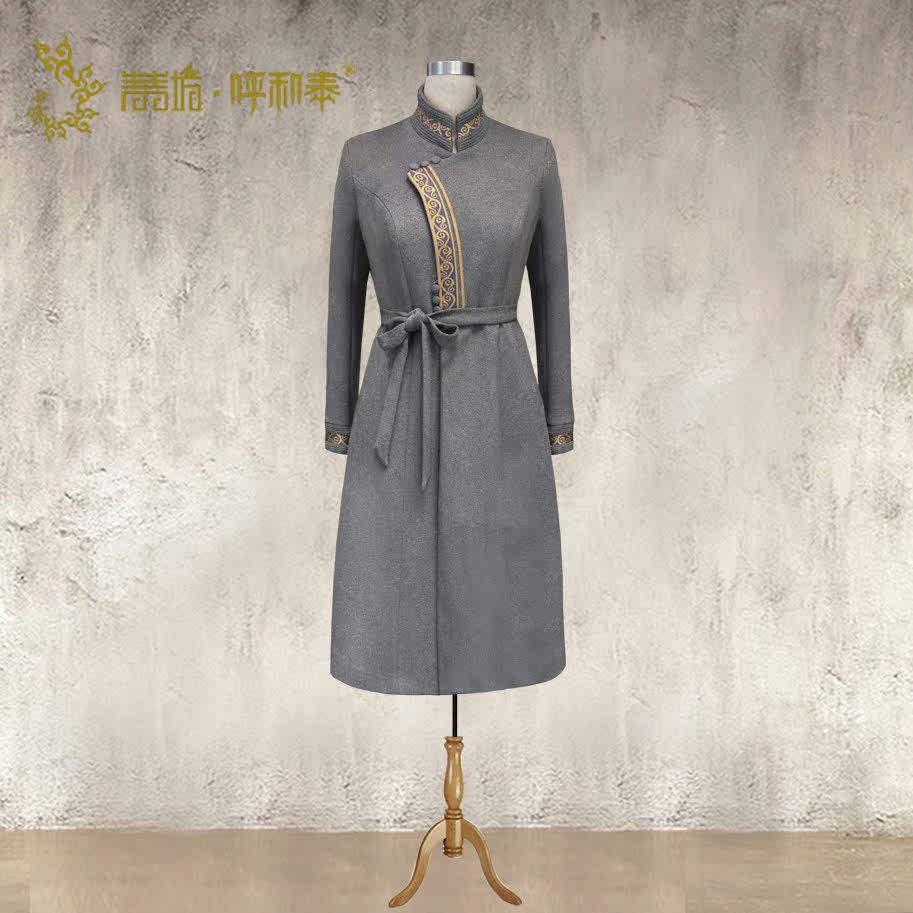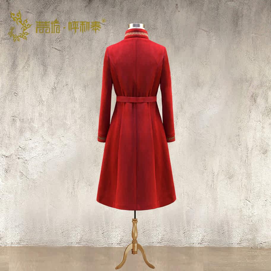 (Qingzangfang and Tai) Custom of Mongolian Fashion Imitation Deer Leather Suede Long Version Windsuit