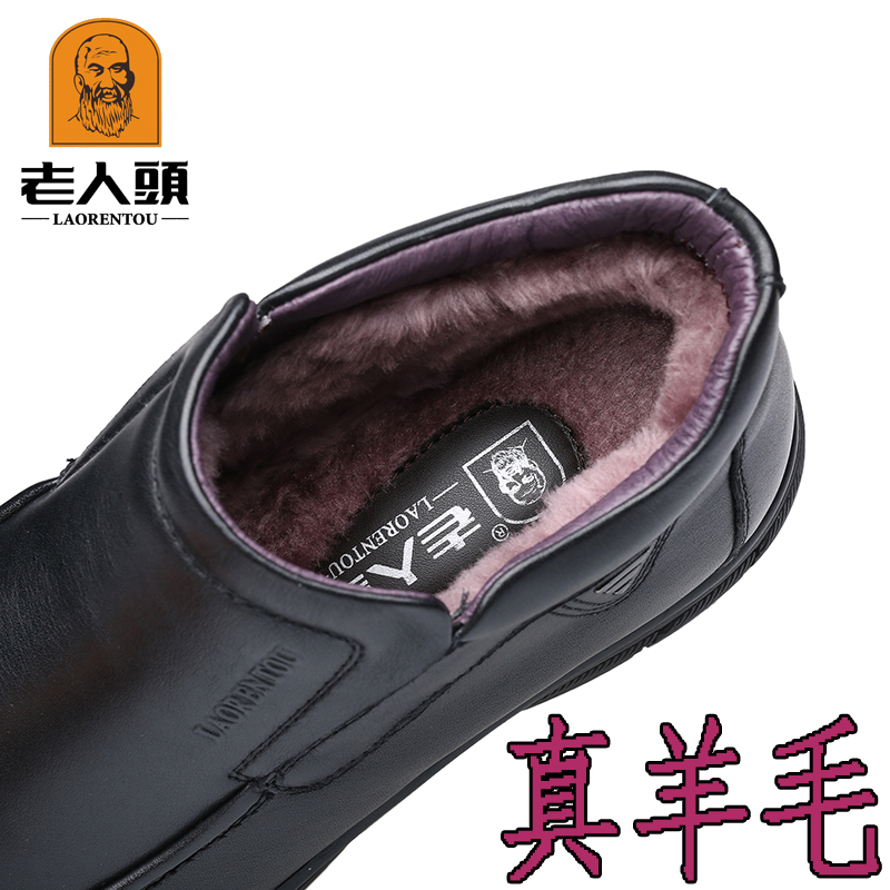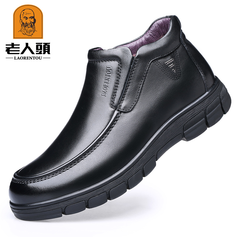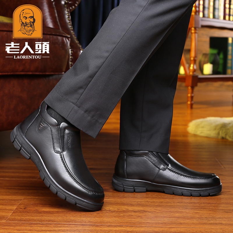 Old man's head men's shoes winter plus velvet warm cotton shoes real wool high-top leather shoes men's real leather middle-aged casual dad shoes