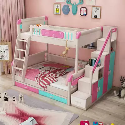 Solid wood mother and child beds, upper and lower beds, high and low beds, double beds, children's beds, girls, princess beds, upper and lower beds, adult multifunctional beds