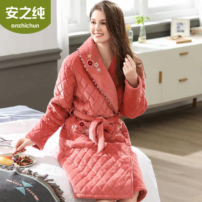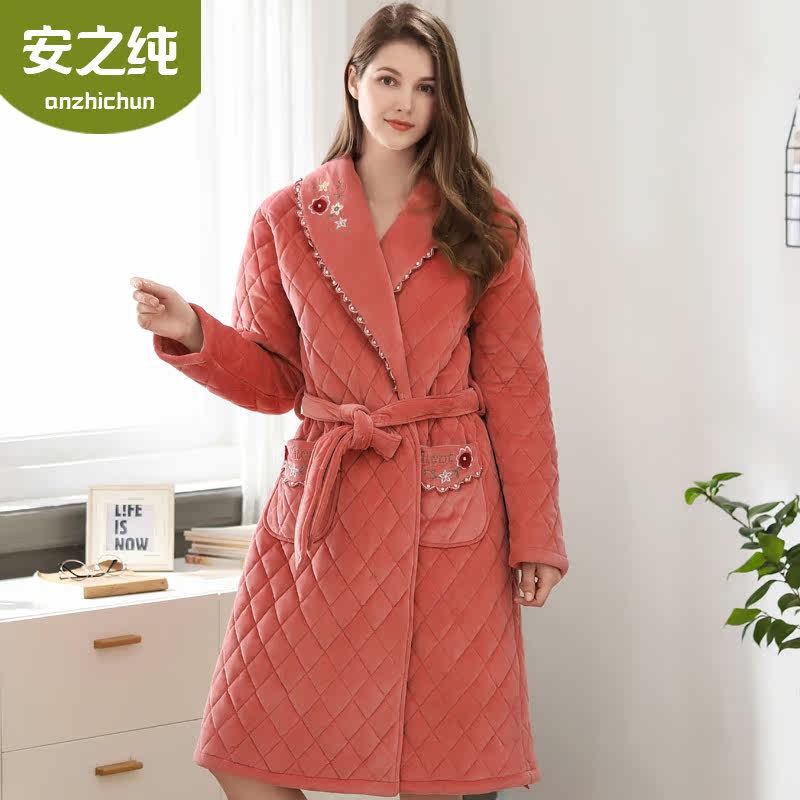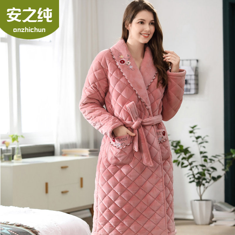Pajamas women winter coral fleece thickened three-layer quilted long pajamas warm and cute autumn and winter ladies bathrobe