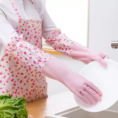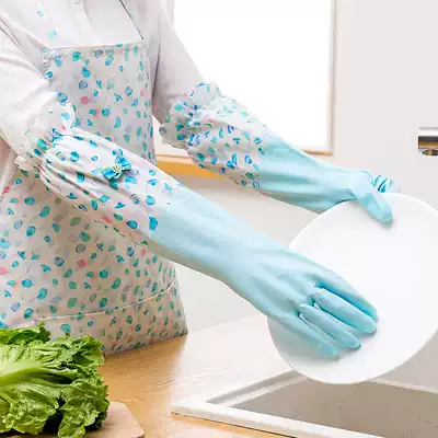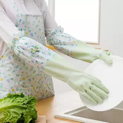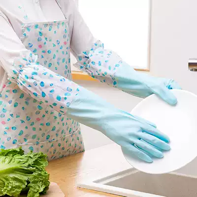 Dishwashing laundry gloves female plus velvet thickened latex rubber waterproof household kitchen housework brush bowl plastic rubber