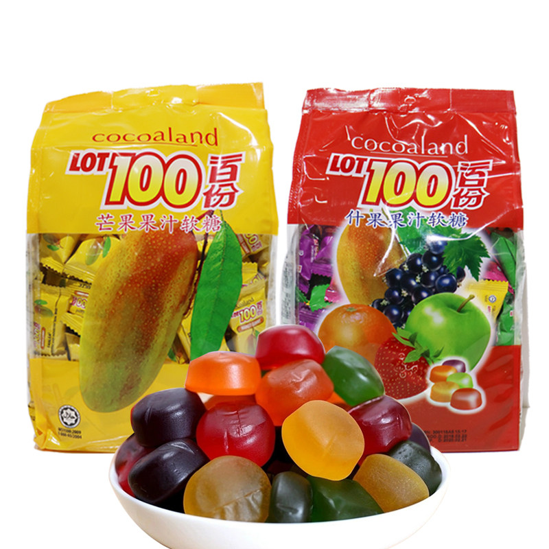 Malaysia's 100 juice soft-sugar cocolato one percent LOT100 to import rubber Q sugar snacks