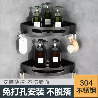 Black 304 stainless steel tripod, punch-free powder room storage shelf, bathroom double-layer corner shelf, wall hanging