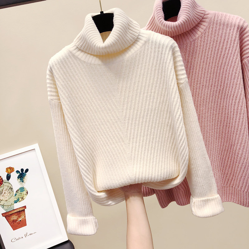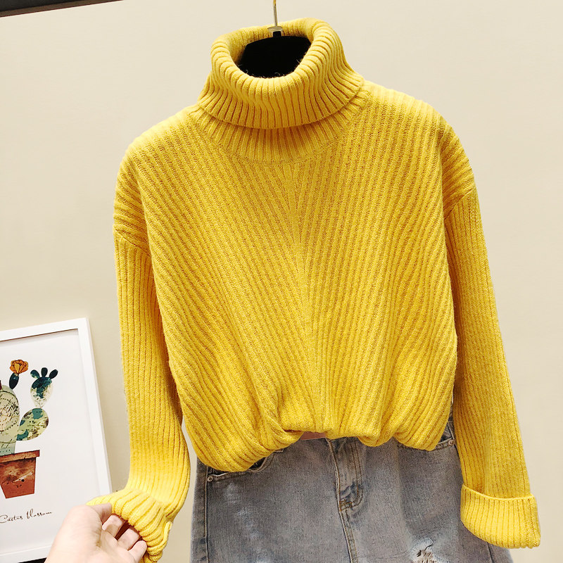 Turtleneck sweater women's 2021 spring and autumn new Korean version loose twist pullover sweater student thickened base top
