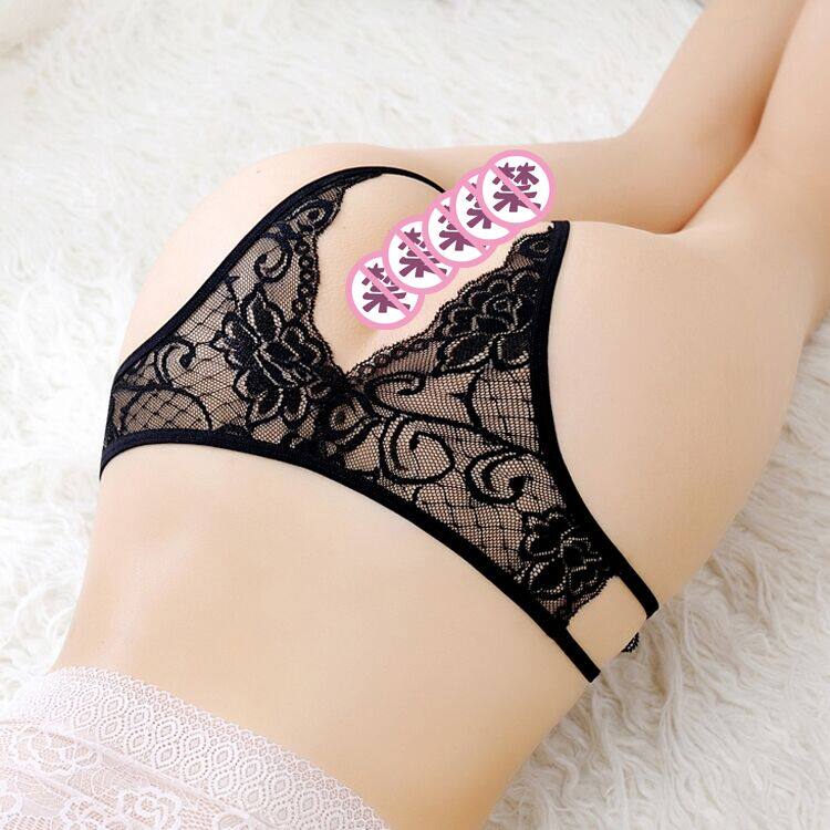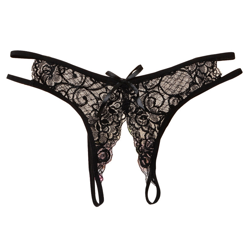 Women's thong sexy open crotch lace black see-through T pants M open large size red Japanese full transparent invisible