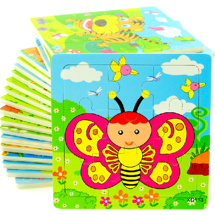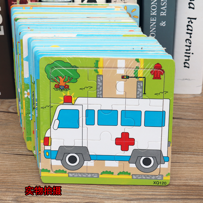 Early education jigsaw puzzle toy boys and girls nine pieces of building blocks young children intelligence development wooden cartoon animal panels
