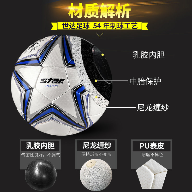 Star official flagship Star 2000 football No 5 1000 leather foot sense SB225P professional match football