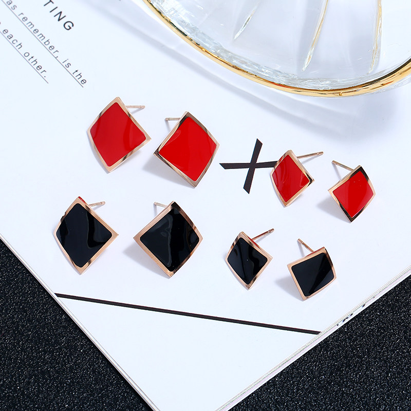 Square rhomboid earshot female Korean minimis suitable for round face earrings titanium steel geometric earbuds 100 lap net red earrings